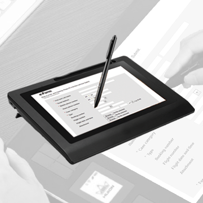 SIGNATUREPAD™ is the Latest High-Performance Context Sensitive Digital Signature Pad. With its TFT LCD resolution, electromagnetic touch and together with electronic pen, it